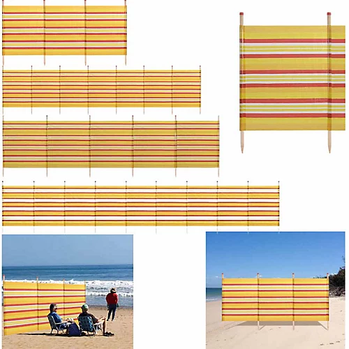 This Windbreak Is An Excellent Accessory For Any Camping Trip. Windscreens Are Fast To Set Up And Easy To Move & Not Only Offering Shelter On Site For Campers As Effective Windbreaks, They Also Offer Extra Privacy Which Can Be Hard To Find At Busy Times. Brilliant For Camping, Beaches, Festivals, Picnics Or Parks. These Breakers Are Strong And Durable, With A Colourful Striped orange, Yellow & Red Design.
