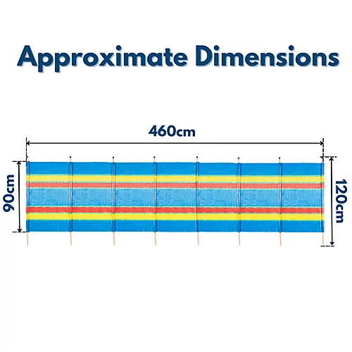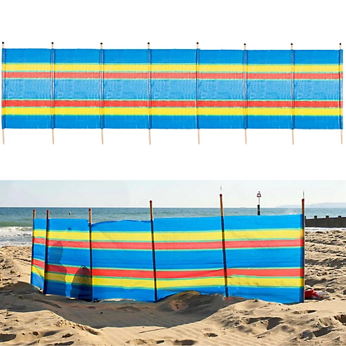 These are the brand new high quality lightweight wind breakers. It is ideal for camping, picnic and for beach to avoid wind from distraction. These breaker are strong and durable, with a colourful striped blue, yellow & red design and easy to erect – simply push the poles into the ground or sand.