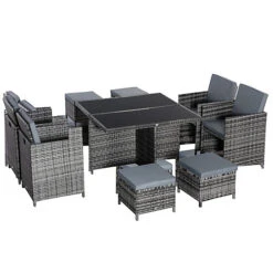 The Royalcraft Aspen range has two different styles. If you are looking for garden furniture which matches your contemporary style, the Aspen range is for you. Dining sets are made from rope effect synthetic rattan, featuring a spray stone glass top. The lounging set has FSC certified 100% teak features with aluminium frames, making this set a modern design.