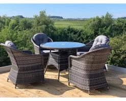Introducing this deluxe rattan garden set comprising of a 2 seater sofa with thick shower proof seat and back pads, 2 single arm chairs also with thick shower proof seat and back pads and a scratch resistant tempered glass top table with a rattan wicker style finish.