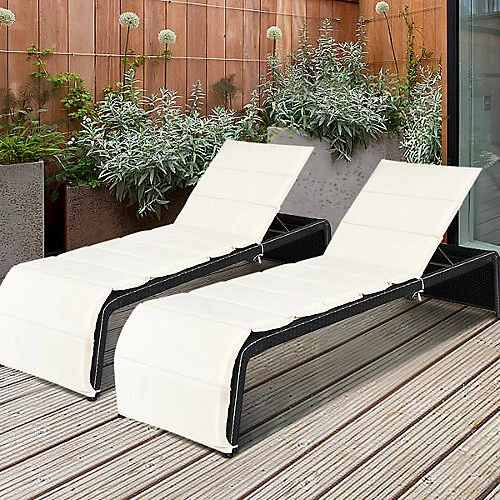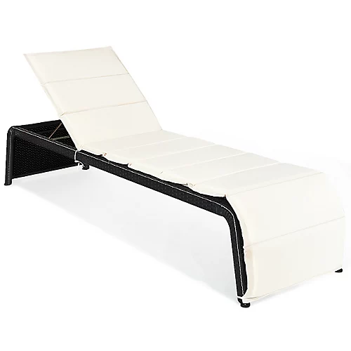 Our lounge chair can let you enjoy the sunshine while taking a nap in the patio. The heavy duty frame and durable material offers a long term use. There are 5 adjustable positions of the backrest to bring you the most comfortable experience. And the thick cushion is soft and skin-friendly for relaxation. The wicker rattan chaise lounge is suitable for various occasions both serving as a decoration and a practical furniture. Moreover, with weather-resistant feature, the chaise lounge is easy to maintain.