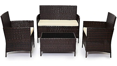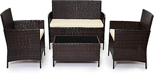 - ECO-FRIENDLY, RESILIENT & COMFORTABLE This set is made of high quality, fully recyclable PE rattan, ensuring that it is UV resistant & very low maintenance! The coffee table top is super stylish with tempered safety glass, making it anti-glare, and water & heat resistant. The 5cm cosy padded seat cushions ensure to make your garden or balcony experience that much better.