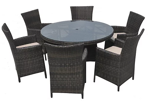 - SEVEN-PIECE GARDEN SET: Comes with four dining armchairs and a matching round dining table. A way to bring family/friends together in your garden and outdoor areas.