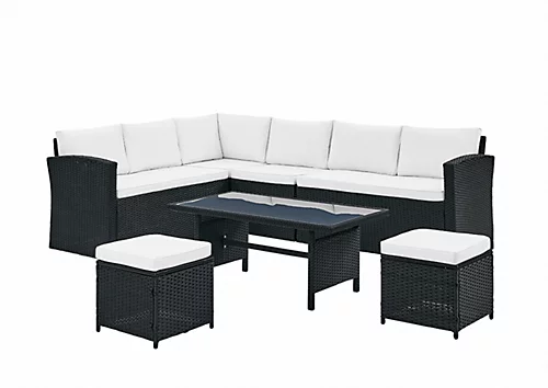 - Set made up of 2 Sofas, Corner & Armless Seat, Coffee Table & 3 Stools