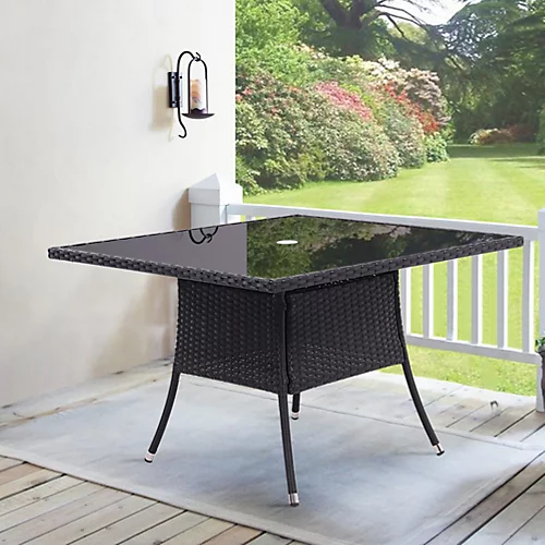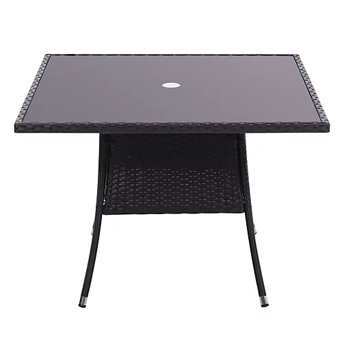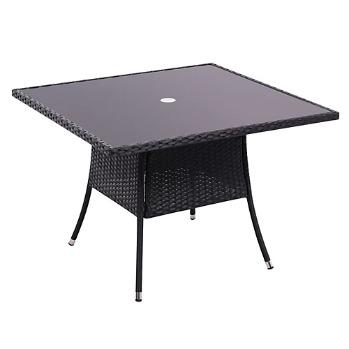 This Livingandhome wicker table is designed for a small group of people to enjoy a wonderful dinner alfresco. Its rustic look goes well with the outdoor environment. The frame and rim of the table are wrapped with meticulous woven wicker, and the rattan effect is the highlight of the whole piece. The splayed legs afford the table with enough support. And the hole in the middle is for a parasol to keep you and your guests under shade.