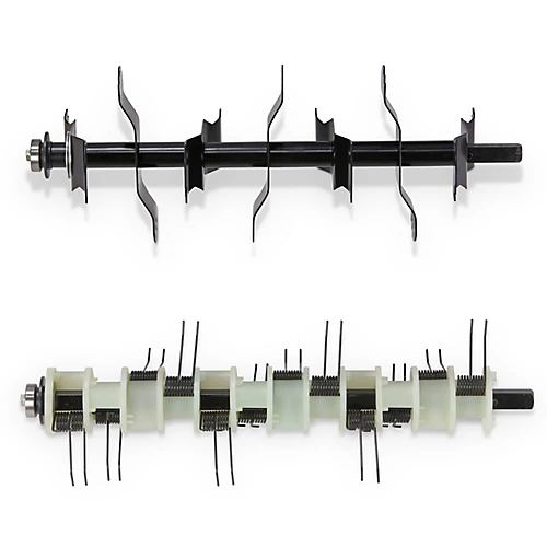 This raker & scarifier has 24 raking tines which gently combs grass and removes moss, leaves and thatches. The 7 scarifying blades cut into the ground, clearing the lawn and preparing it for reseeding