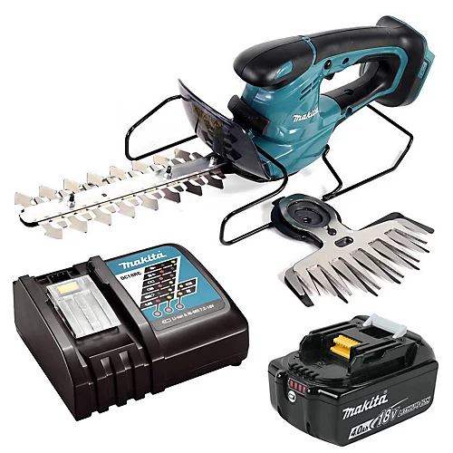 The Makita DUM604Z 18v LXT Li-ion 160mm Grass Shears feature a stain-free shear blade surface of glittering silver obtained by non-electrolysis nickel plating that features high anti-abrasion surface for a long-lasting coating. The DUM604Z is designed for home users, landscapers, nurseries and gardeners and its blade systems are interchangeable, where the grass shear and hedge trimmer blades can be installed into both the 10.8v and 18v units. This model also has the added feature of a battery capacity warning – lamp starts blinking red, this indicates battery capacity is low and when the lamp lights up, the tool has stopped due to battery capacity being empty.