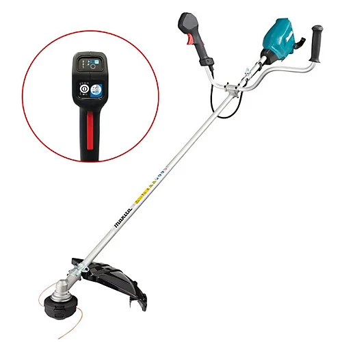 The Makita DUR369AZ twin 18v brushless brushcutter requires 2 x 18v batteries to operate and has been designed to suit the needs of commercial end-users in mind, who are looking for a high powered, quiet and easy to use alternative to a petrol machine, without the compromise on power. It features a cow horn/bike handle and a steel drive shaft for less vibration and longer life. It has a 3 stage speed control � high, medium and low speed, that can be changed by simply pushing a button on the easy to use LED display.