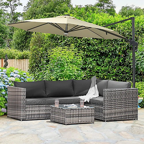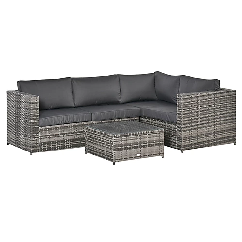 This outdoor corner sofa from Outsunny. The small garden furniture is made of weather-proof rattan with a metal frame for extra support and stability, giving you more time to relax and enjoy the sun. Featuring two loveseats and a square coffee table, there’s plenty of room for yourself and friends, with plush padded cushions to provide all day comfort and support. The conservatory furniture set is finished with a tempered glass top on the coffee table for a stylish garden set.
