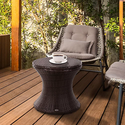 This Outsunny rattan drinks cooler will be a great addition to your outdoor living experience, made from stainless steel frame with and covered with rattan. A unique feature is that the integrated table can be raised opening the drinks storage area, and can be used as a table. When not in use push the table down to close and store away. This is a very stylish and practical item to have and a great addition for when you have parties and guests around.