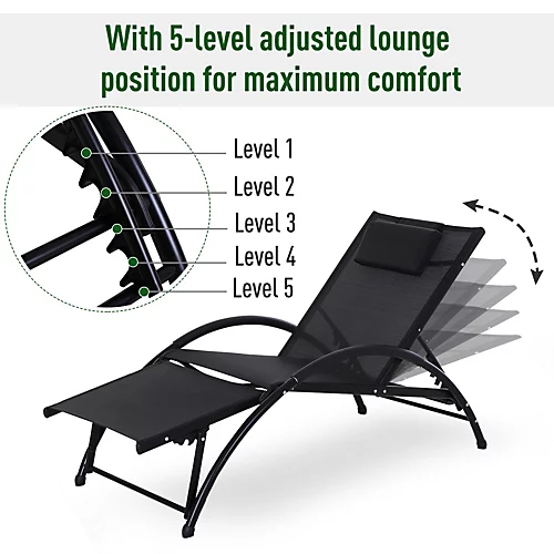 - • Item Name: KD leisure chair • Brand Name: Outsunny • Material: Aluminum Frame, Texteline Fabric • Color: Black • Max Load: 120kg • Overall Dimension: 66W x 152D x 81H cm • Reclining Dimension: 66W x 173D x 40H cm • Seat Dimension: W58 x 52.5D cm • Seat Height(Front): 40cm • Seat Height(Rear): 30cm • Net Weight: 6.6kg• Flat Pack: Yes • Custom Label: 84B-447V70BK