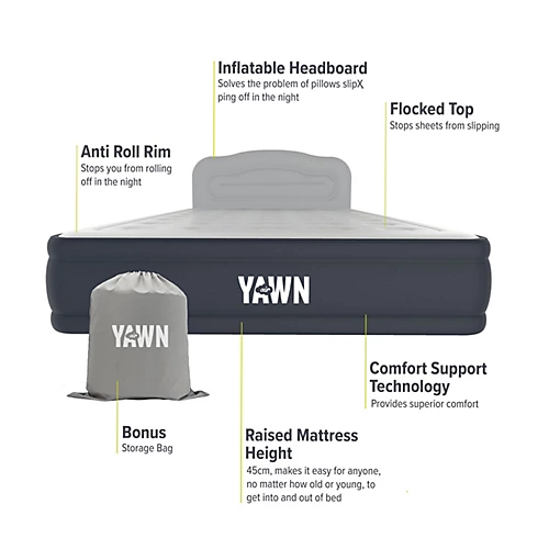 The luxury portable bedding solution. With incredible Comfort Support Technology and a powerful built-in pump, YAWN Air Bed combines the convenience of an air bed with the luxurious feel and comfort of a real bed for a perfect night’s sleep.